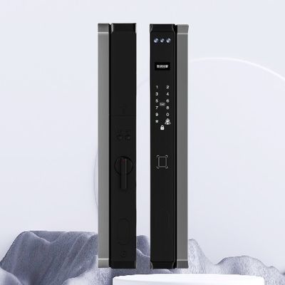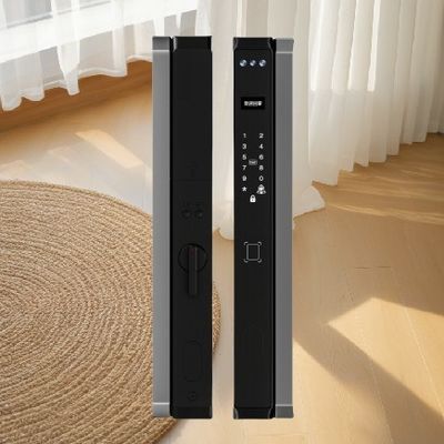 This Face IC Card Aluminum Door Lock is a mechanical keyless entry system with handle, featuring multiple unlocking methods including fingerprint, card, key, and password. It supports time-based access control for businesses and operates with a quiet motorized deadbolt.