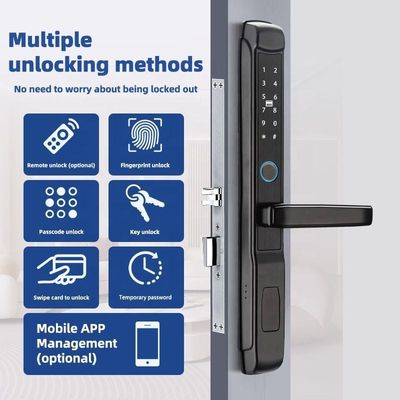 Unlock type | Fingerprint, card, key, password, Tuya APP, remote control (optional). Support temporary password and virtual password |