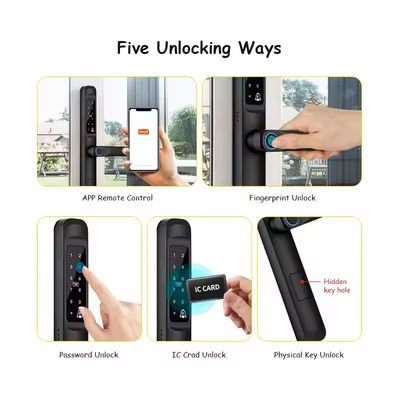 Unlock type | Fingerprint, card, key, password, Tuya APP, remote control (optional). Support temporary password and virtual password |