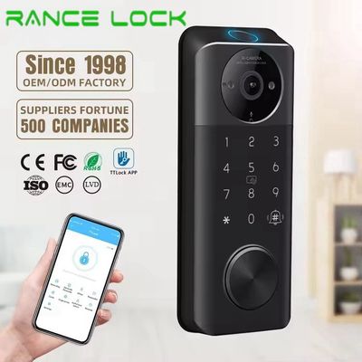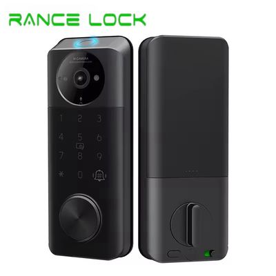This smart lock system integrates facial recognition with a built-in door viewer camera, providing a clear visual of visitors and allowing for hands-free operation. The lock automatically detects authorized faces for quick and secure entry, eliminating the need for keys or codes. Monitor visitors in real-time through the lock's display or mobile app for complete access control.